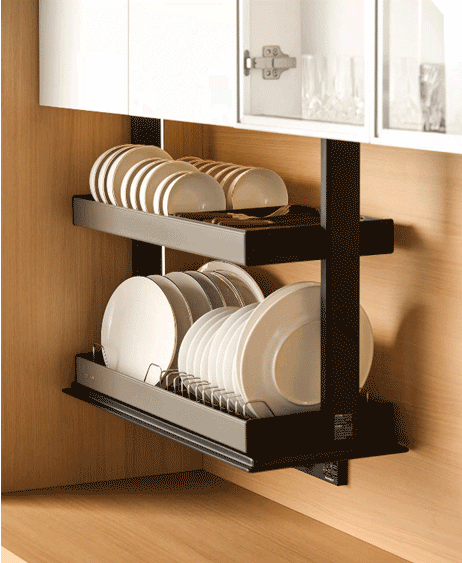 全面的规格配置,更加适应多元的收纳需求,星幕2.0电动升降机提供三种深度规格,能够完美适配当前市场主流尺寸的厨房吊柜。特别值得一提的是,悍高集团本次首发的294mm全尺寸碗碟款,在原有规格基础上进一步扩展了收纳空间。这款产品的篮体内部高度充足,能够轻松容纳较大体积的餐具和厨具,有效解决了传统吊柜难以存放异形或大型物品的痛点。